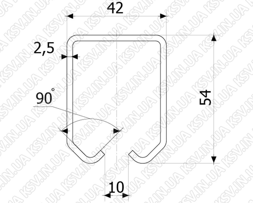 Спеціальна напрямна СТРІКС середня (ш/в) 42×54 з товщиною металу 1.5 мм, виготовлена з оцинкованої Вуглеродистої сталі, використовується для виготовлення підвісних воріт, зсувних конструкцій з максимальним ваговим навантаженням до 300 кг.