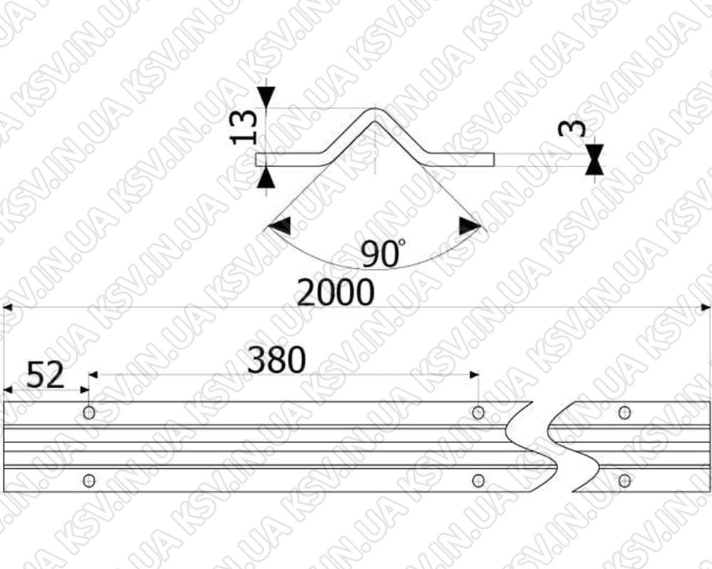 Нижній напрямний профіль (монорейка) для виготовлення воріт по кутку, виготовлений з вуглецевої, оцинкованої сталі товщиною 3 мм, максимальне навантаження до 600 кг за умови встановлення додаткової арматури під профіль