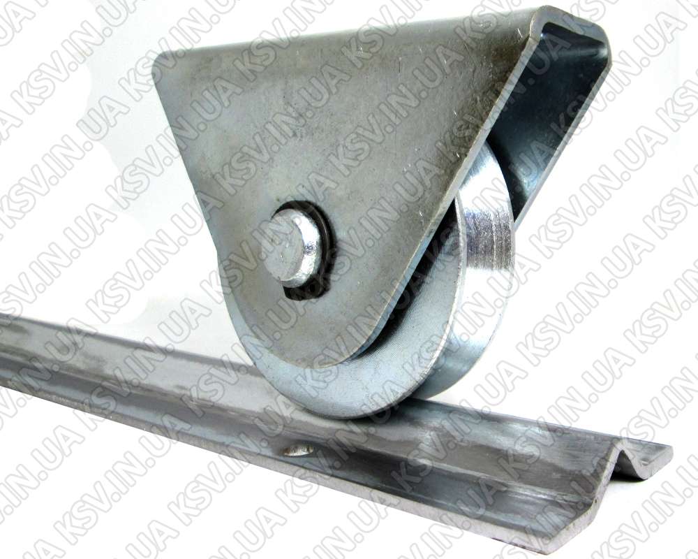 Ролик для відкатних воріт (V канавка) на опорному підшипнику із зовнішнім монтажним кронштейном, використовується для виготовлення відкатних воріт на монорейці