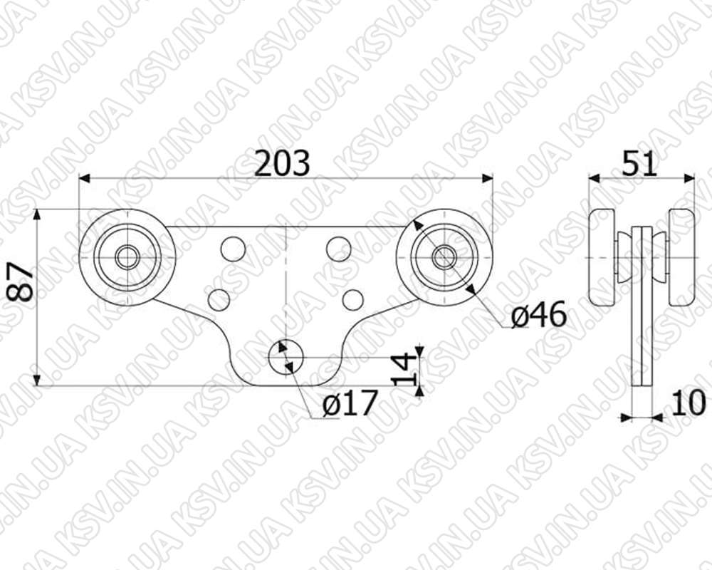Роликова каретка несуча зі сталевими роликами на 201 підшипнику, сумісна з балкою 69×58 і 70×58, використовується для виготовлення підвісних воріт і зсувних конструкцій з вагою до 400 кг