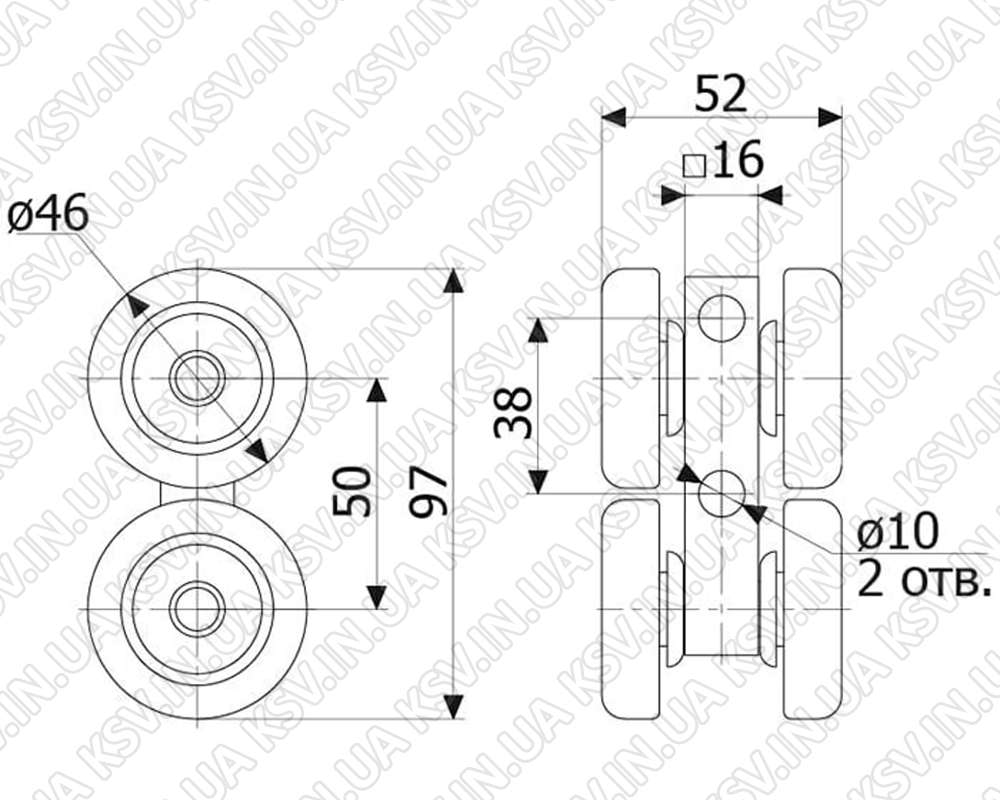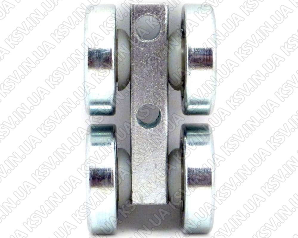 Роликова каретка несуча зі сталевими роликами на 201 підшипнику, сумісна з балкою 69×58 і 70×58, використовується для виготовлення підвісних воріт та зсувних конструкцій з вагою до 400 кг
