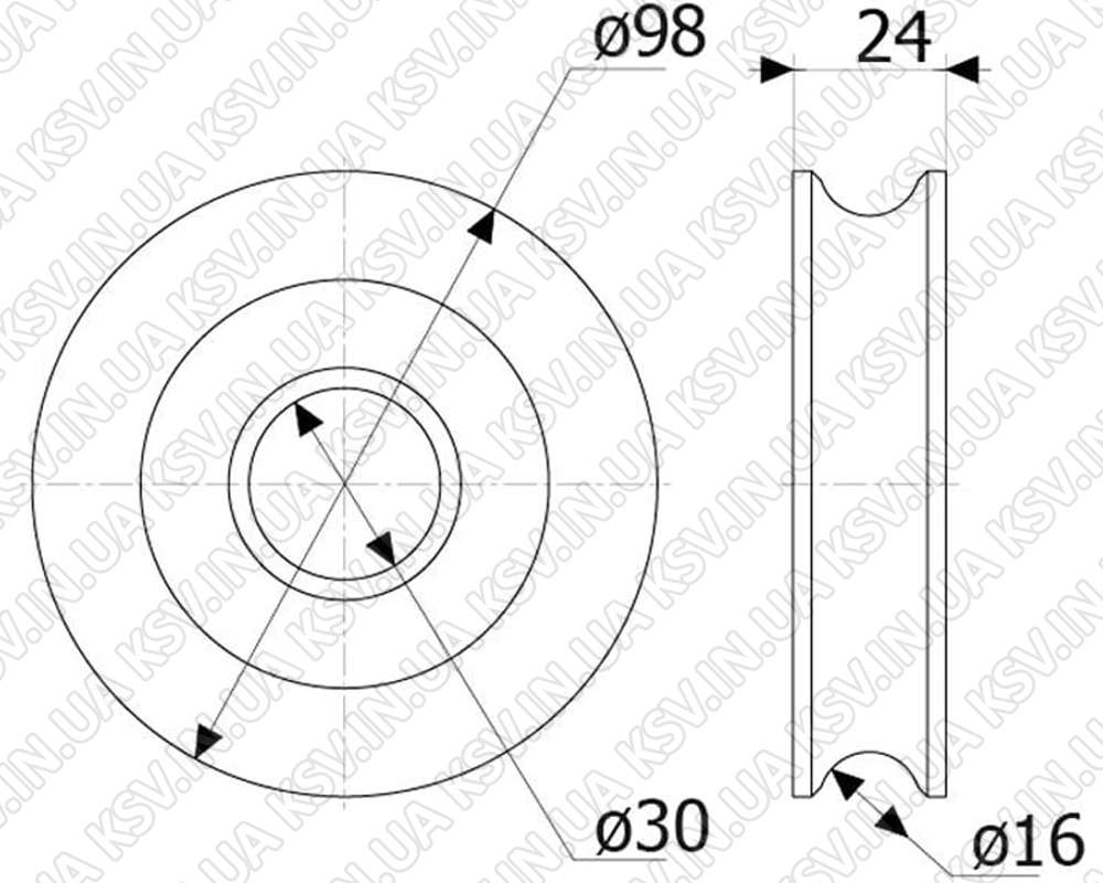 Ролик для відкатних воріт по трубі (U канавка) на опорному підшипнику без монтажного кронштейна, використовується для виготовлення воріт на монорейці