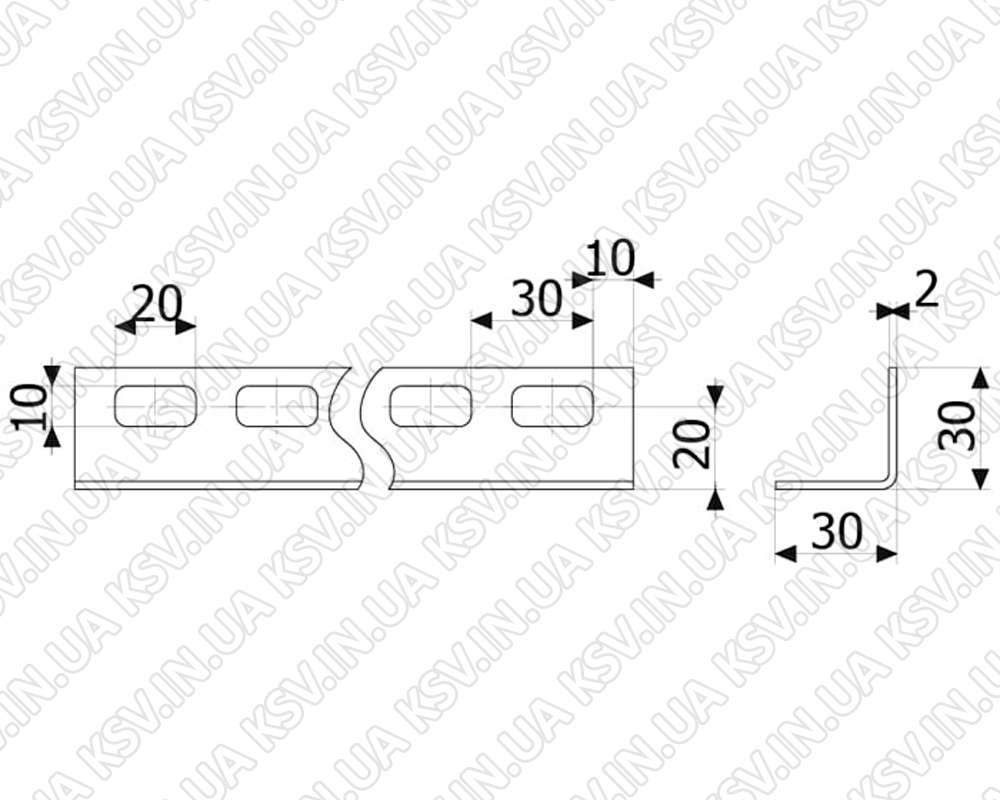 Оцинкований монтажний куточок по всій довжині має отвори, використовуються при монтажі гаражних секційних воріт, а саме для кріплення напрямних до горизонтальної поверхні (до стелі)
