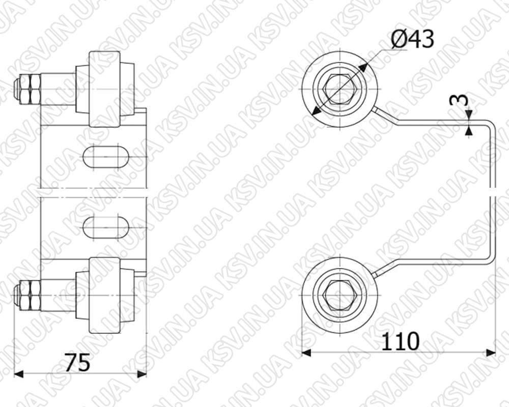 Розміри та характеристики універсального уловлювача для відкатних воріт та конструкцій: