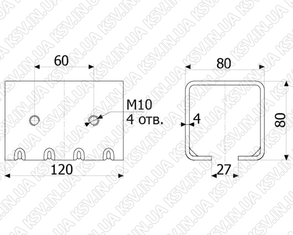 Сполучний кронштейн дозволяє легко та швидко без застосування зварювання з'єднати напрямною між собою. Кронштейн сумісний з направляючою малою 70×60 - 69×58, загальне вагове навантаження підвісної конструкції до 400 кг