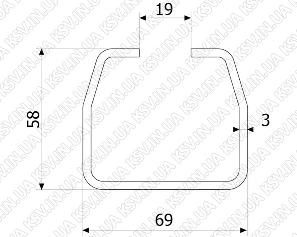 Спеціальна напрямна мала (ш/в) 69×58 з товщиною металу 3.0 мм, виготовлена з вуглецевої сталі, використовується для виготовлення відкатних, підвісних воріт і зсувних конструкцій з максимальним навантаженням до 500 кг.