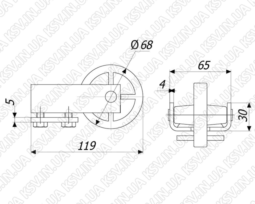 Концевой ролик используется в изготовлении откатных ворот консольного типа, устанавливается в торце направляющей большой 95×81, в закрытом положении створки наезжает на нижний уловитель с полкой, чем частично снимает нагрузку с несущих роликовых кареток